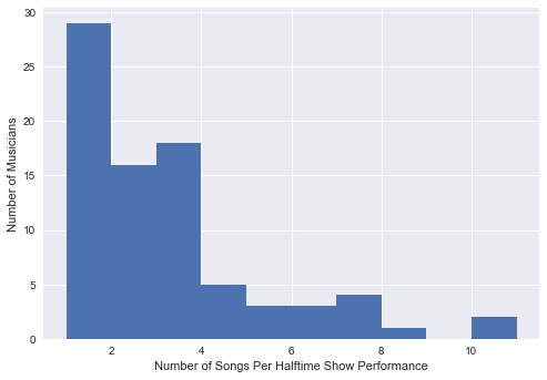 plt.xlabel("Number of Songs Per Halftime Show Performance")